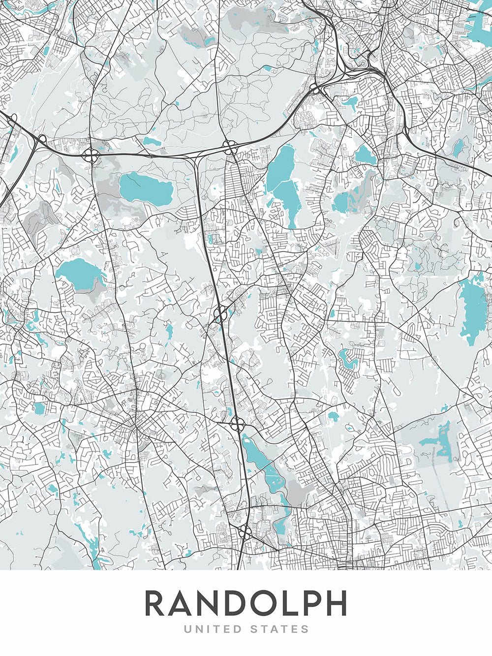 The Randolph map is a modern cartographic masterpiece that captures the essence of this charming city in Massachusetts. This map is a visual delight, featuring intricate details and a contemporary design that will complement any home or office. The map focuses on the city of Randolph and its surrounding areas, providing a comprehensive overview of this vibrant region.
