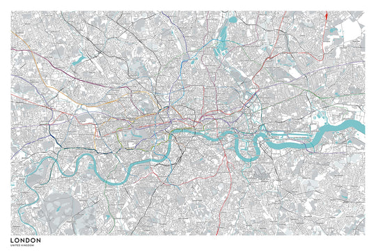 Explore the intricate tapestry of London's urban landscape with our exquisite "Modern London Map with Real Underground Routes," crafted by the Unique Maps Co. in 2025. This masterpiece captures the vibrant essence of London, showcasing the city's detailed street layout alongside the authentic paths of its iconic underground lines, including the celebrated Elizabeth Line. You've probably seen Harry Beck's famous Underground map thousands of times - now it's time to see the real Tube map!