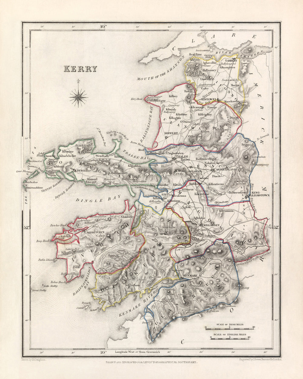 Old Map of County Kerry by Samuel Lewis, 1844: Tralee, Killarney, Dingle, Kenmare, and Listowel