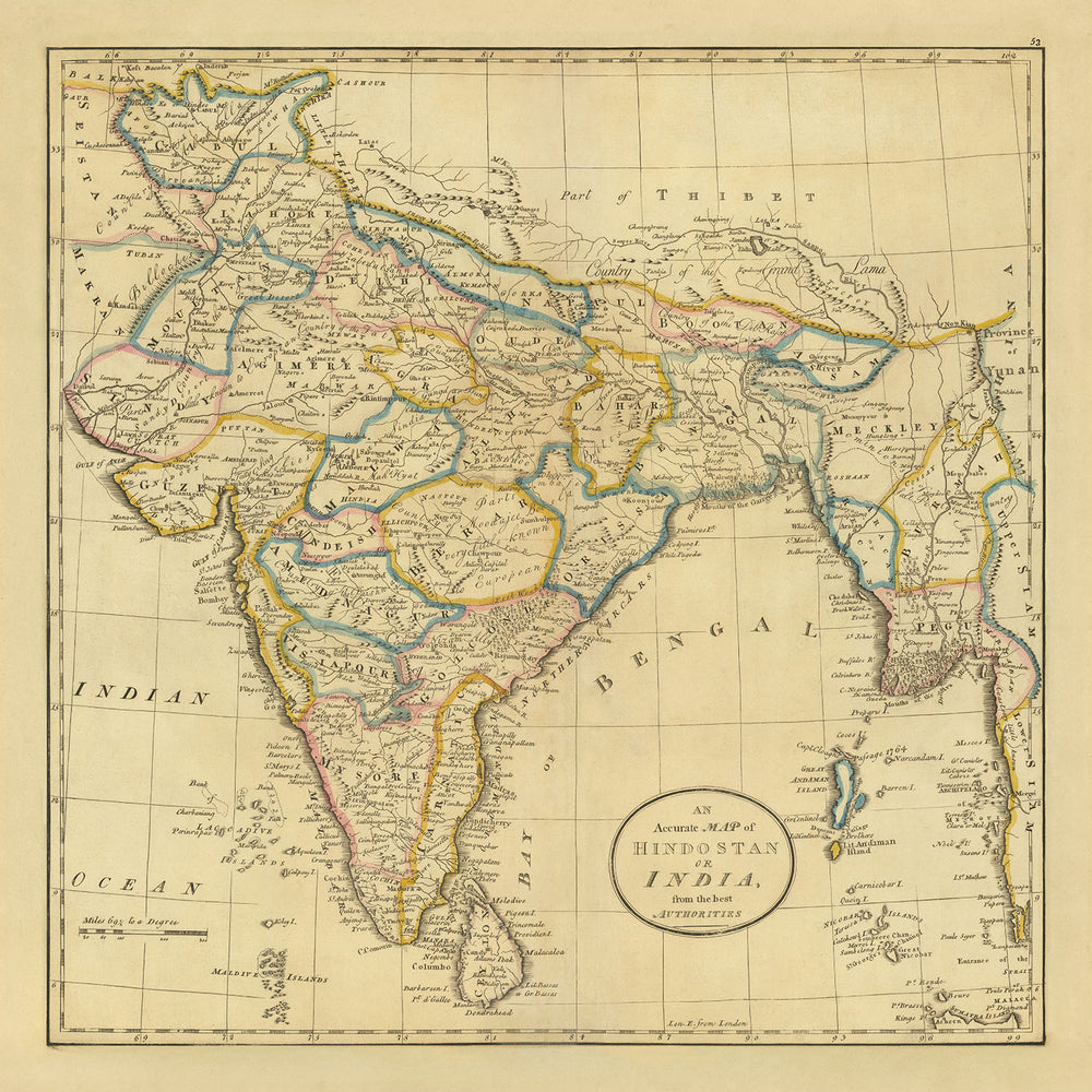 The map's primary subject is India, but it also provides a detailed depiction of the surrounding regions, including Hindoostan, Ceylon, Burma, the Andaman Islands, and the Bay of Bengal. These areas are represented with remarkable precision, reflecting Carey's commitment to accuracy and detail. The map's style is both political and physical, offering a comprehensive view of the region's political boundaries and physical landscapes. The result is a richly layered representation that provides a wealth of information about the region's geography and political landscape.