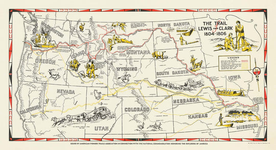 Old Map of Lewis & Clark Expedition: Corps of Discovery, Oregon Trail, Mormons, Pony Express, Louisiana Purchase
