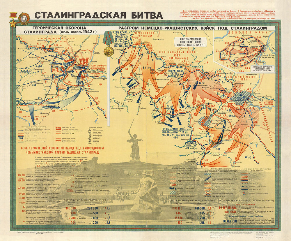 In addition to its military focus, the map is rich with cultural and historical significance. It features iconic landmarks such as the "Motherland Calls" statue and the Red October Factory, which played crucial roles during the battle. These elements not only enhance the map's visual appeal but also serve as reminders of the resilience and determination of the Soviet people. The map's intricate design and attention to detail reflect the pride and reverence with which the Soviet Union commemorated this monumental event.