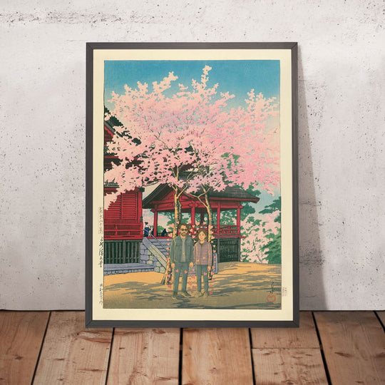 Send us a photo of yourself, your partner, your family — even your pet! We'll skillfully transform it into a delicate, painterly illustration, blending seamlessly into a scene inspired by masters like Hasui Kawase. The result? A piece of art that looks like it came straight from a vintage print shop in old Kyoto.