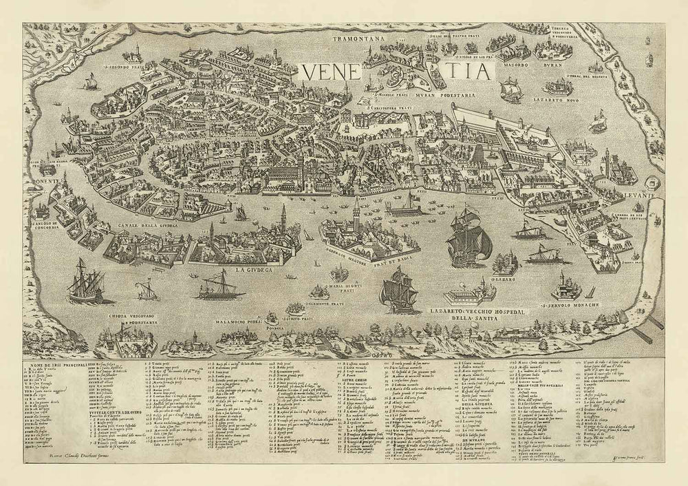 Rare Old Map of Venice, 1570 by Claudio Duchetti: San Giorgio Maggiore, Giudecca, Grand Canal, Merchant Ships