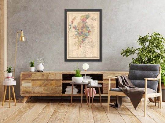 This lovely map of Scotland, created by WH Lizars and published by A. Constable in 1822, is a rare colour map from the early 1800s detailing all of the Scottish clans in the Highlands.