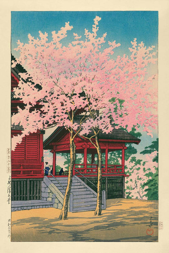 The Kiyomizu Temple and Cherry Blossom in Ueno by Hasui Kawase, 1935
