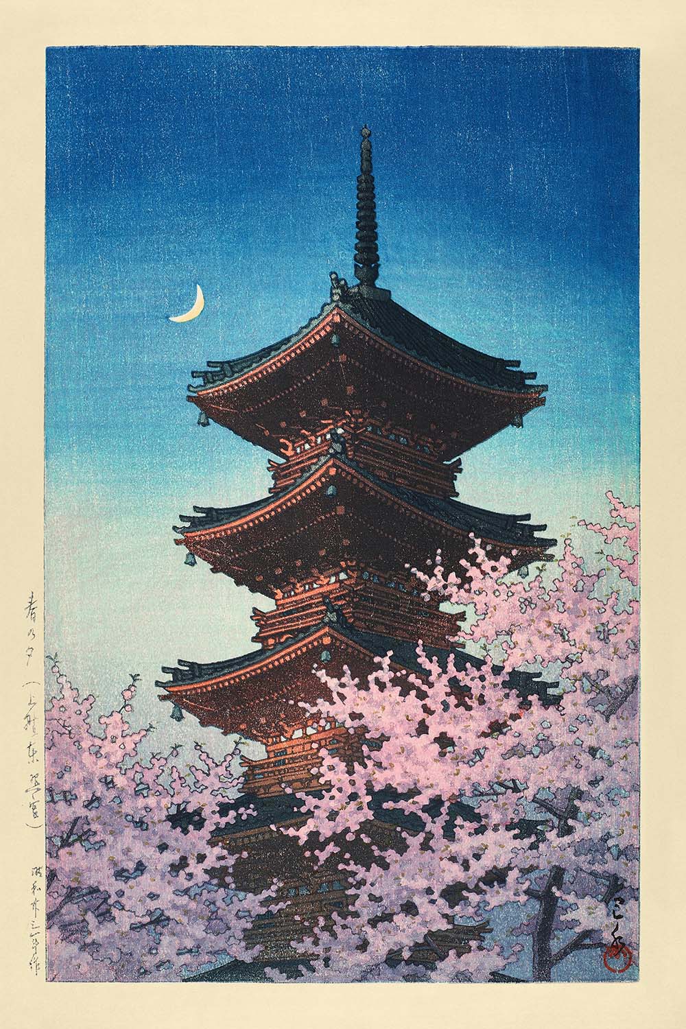 Toshogu Shrine and Cherry Blossom in Spring Dusk by Hasui Kawase 1935