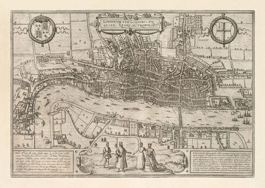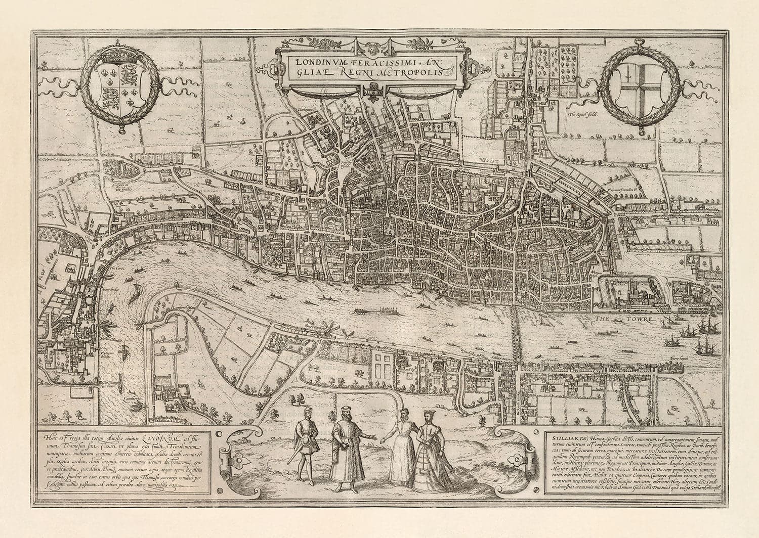 Very Old Map of London, 1572 by Georg Braun: City of London, Westminster, Southwark