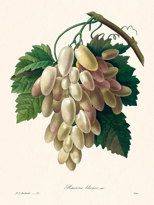 White Grape Botanical Illustration by Pierre-Joseph Redouté, 1827