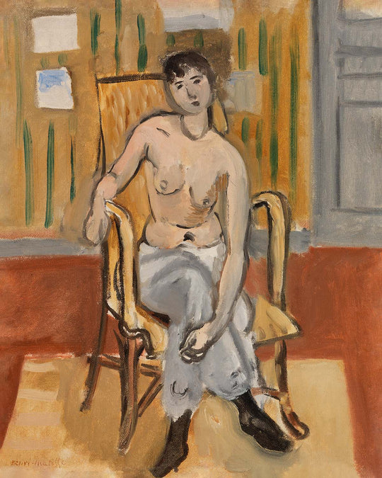 Henri Matisse's "Nu assis dans une chambre bronzée" (Seated Nude in a Tan Room), painted in 1918, stands as a testament to his flair for color and form. Matisse, a leader in the Fauvist movement, was renowned for his bold use of color and expressive brushwork, which is vividly rendered in this captivating piece.