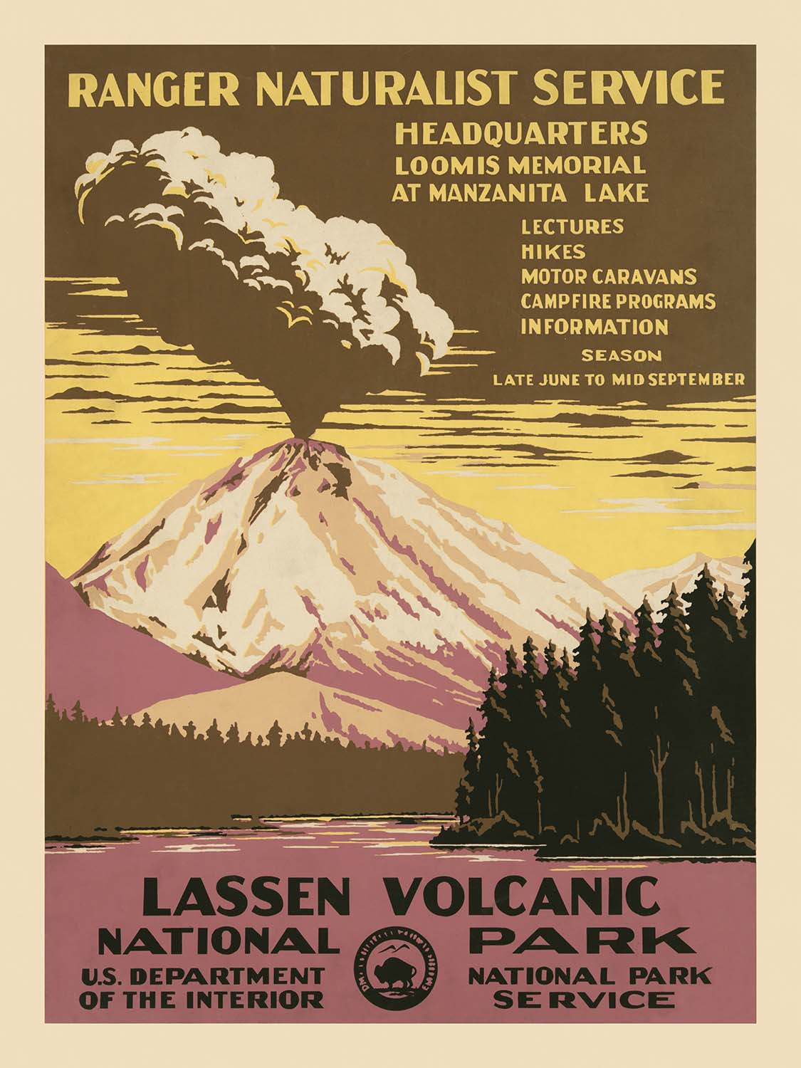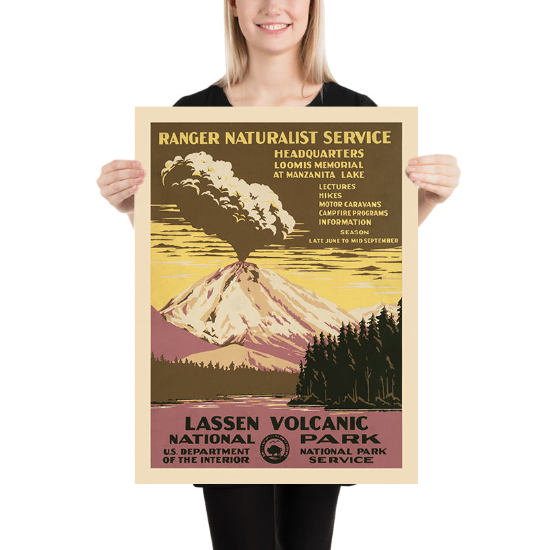 Lassen Volcanic National Park Travel Poster: Ranger Naturalist Service by Chester Don Powell, 1938