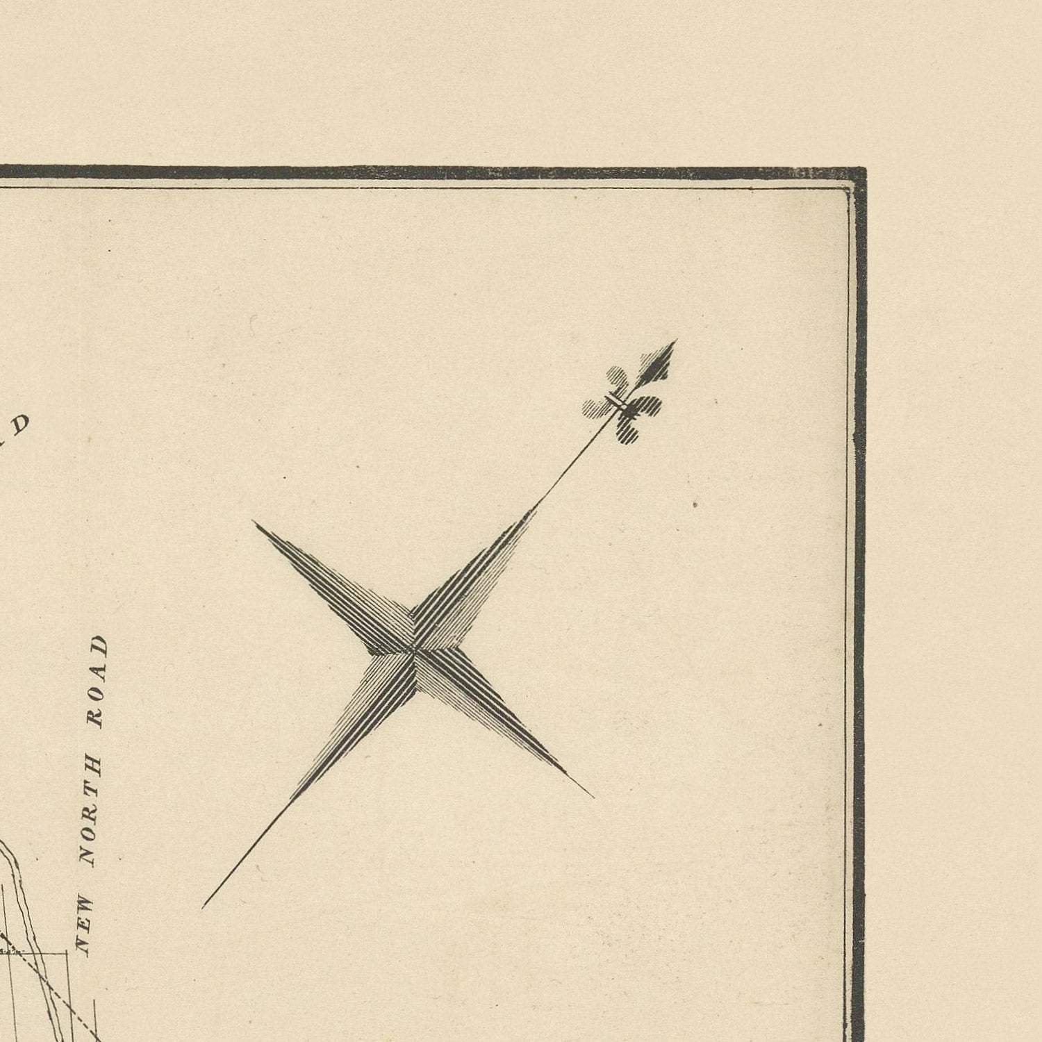 • The map is presented in a monochrome style, emphasizing the intricate street layout, buildings, and features, which were typically hand-drawn and engraved, indicative of early 19th-century cartographic techniques.