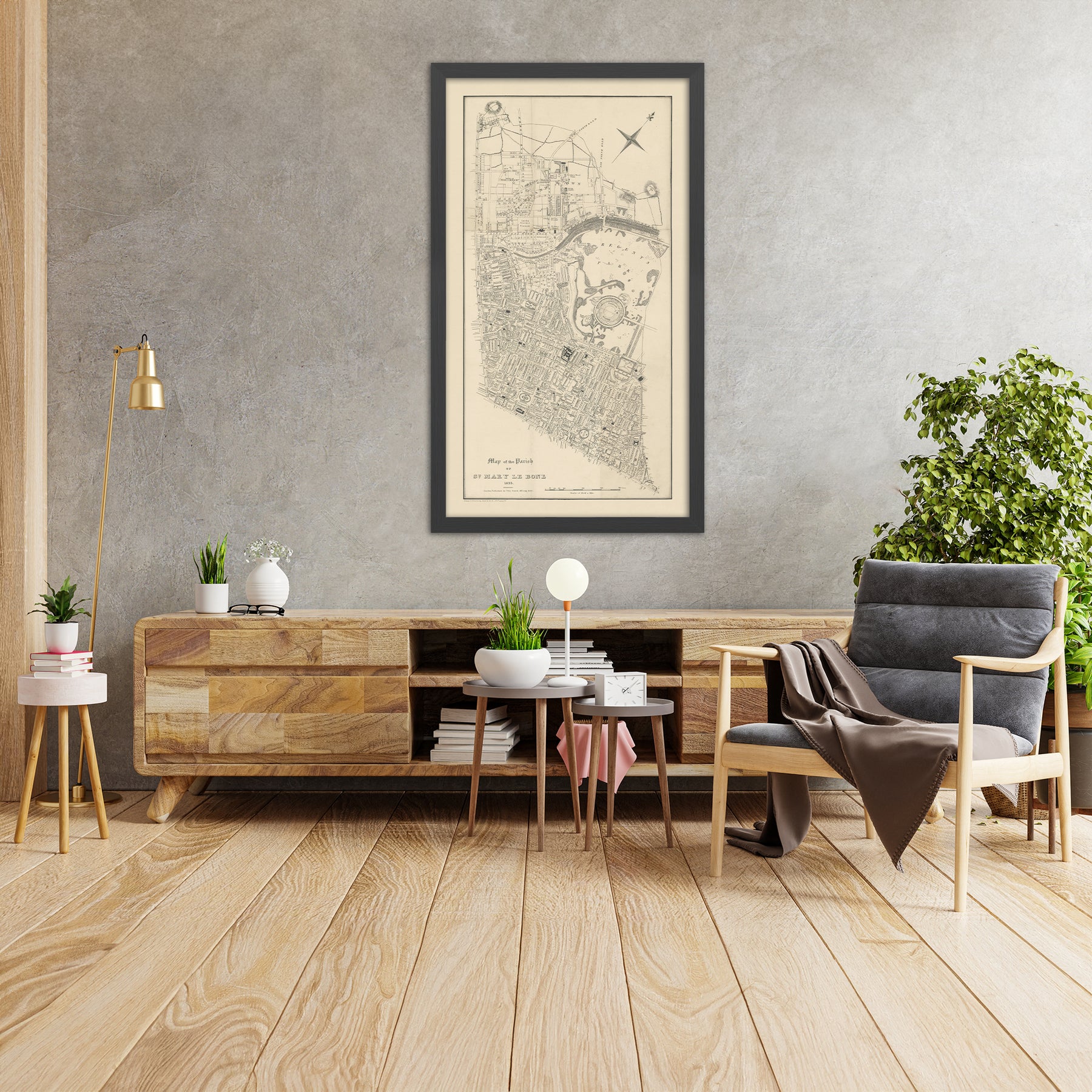 This map is available as a giclée print on acid free archival matte paper, or you can buy it framed. The frame is a nice, simple black frame that suits most aesthetics. Please get in touch if you'd like a different frame colour or material. My frames are glazed with super-clear museum-grade acrylic (perspex/acrylite), which is significantly less reflective than glass, safer, and will always arrive in perfect condition.