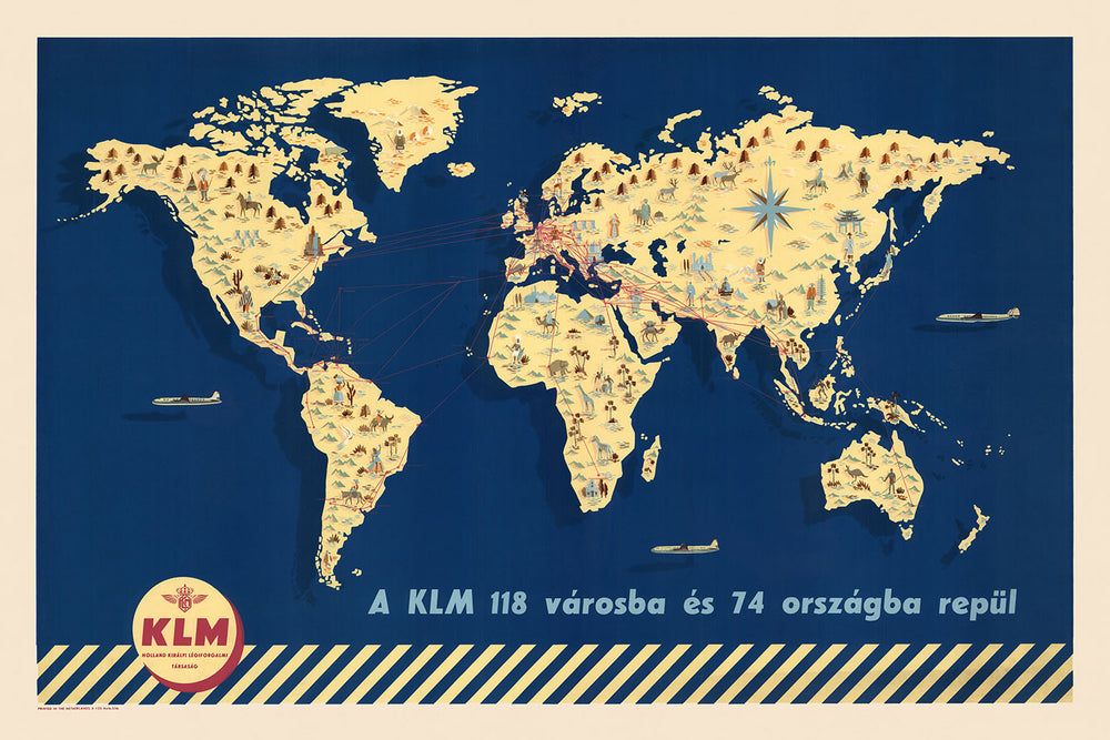- Name of the map: KLM Holland Kiralyi Legiforgalmi Tarsasag World Map