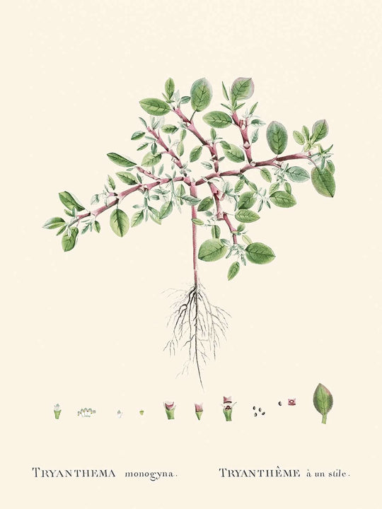 Die wissenschaftliche Leistung, die in Redoutés Werk zum Ausdruck kommt, einschließlich seiner Darstellung des Wüsten-Pferdeportulak, offenbart eine außergewöhnliche Mischung aus Kunst und Wissenschaft, die Botaniker und Kunstliebhaber gleichermaßen anzieht. Dieser Druck feiert nicht nur die Schönheit des Trianthema Monogyna, sondern dient auch als Fenster in das goldene Zeitalter der botanischen Erforschung.