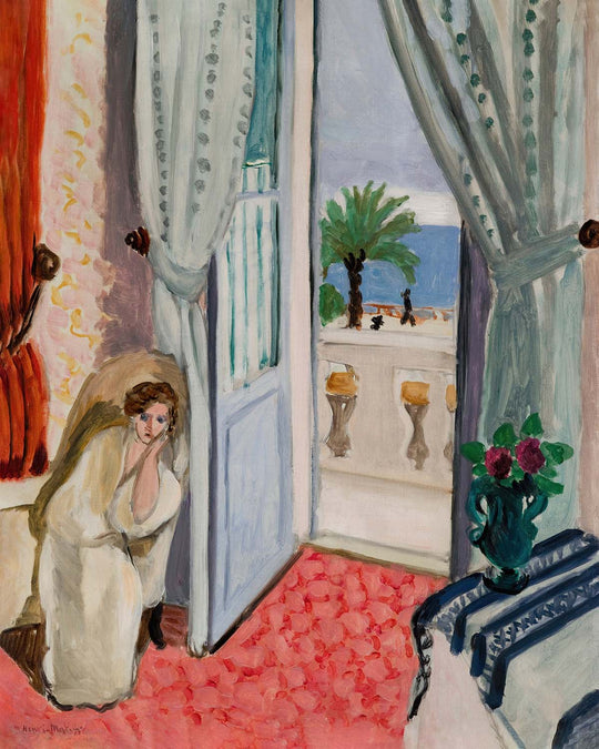 Henri Matisse's "Intérieur à Nice" (Innenraum in Nizza), gemalt im Jahr 1919, fängt das einzigartige Wesen der Häuslichkeit und lebendigen Farben ein, die charakteristische Merkmale von Matisse's postimpressionistischem Stil sind. Dieses Werk war Teil von Matisse's bedeutender Phase während seiner Zeit in Nizza, Frankreich, wo er wiederholt Themen von Licht und Innenräumen erkundete, die seinen Abschied von den düsteren Tönen des früheren Fauvismus in eine Welt widerspiegelten, die mit persönlichem Komfort und ästhetischer Freude gefärbt ist.