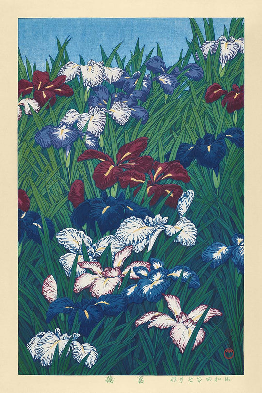 Unser Angebot präsentiert einen hochwertigen Kunstdruck der Schwertlilien, einem ikonischen Kunstwerk von Kawase. Der Druck ist entweder auf säurefreiem, archiviertem Papier oder Künstlerleinwand aus Baumwolle erhältlich, was langanhaltende Farbintensität und Haltbarkeit gewährleistet. Wählen Sie aus einer Auswahl von Größen, um perfekt in Ihren Raum zu passen. Die Unique Maps Co. bietet auch elegante Rahmenoptionen und Personalisierungsfunktionen, um Ihren Druck individuell zu gestalten.