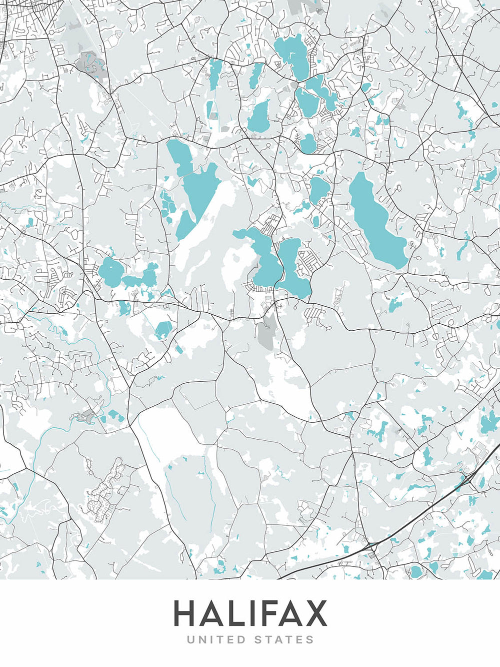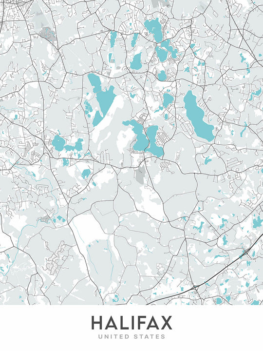 Diese Karte von Halifax, Massachusetts, ist ein modernes und detailliertes kartografisches Kunstwerk, das sich auf die Straßenführung der Stadt konzentriert. Die Karte erstreckt sich etwa 9 Meilen nördlich des Stadtzentrums und 9 Meilen südlich. Es erstreckt sich etwa 7,5 Meilen westlich des Mittelpunkts und 7,5 Meilen östlich des Mittelpunkts. Das bedeutet, dass die Karte ein Gebiet von etwa 18 Meilen von Nord nach Süd und 15 Meilen von West nach Ost abdeckt.