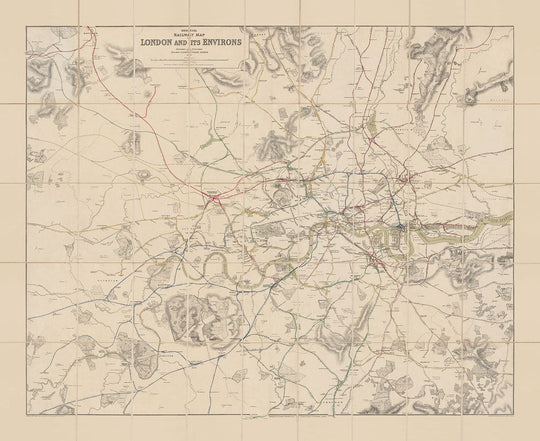 Diese Karte zeigt, wie fortschrittlich die Londoner Eisenbahnen bereits Ende des 19. Jahrhunderts waren. Einige der frühesten U-Bahn-Linien sind hier zu sehen (die Metropolitan-Linie, hellblau gefärbt), aber es sind größtenteils Linien, die später zur London Overground und zu verschiedenen National Rail-Linien werden sollten.