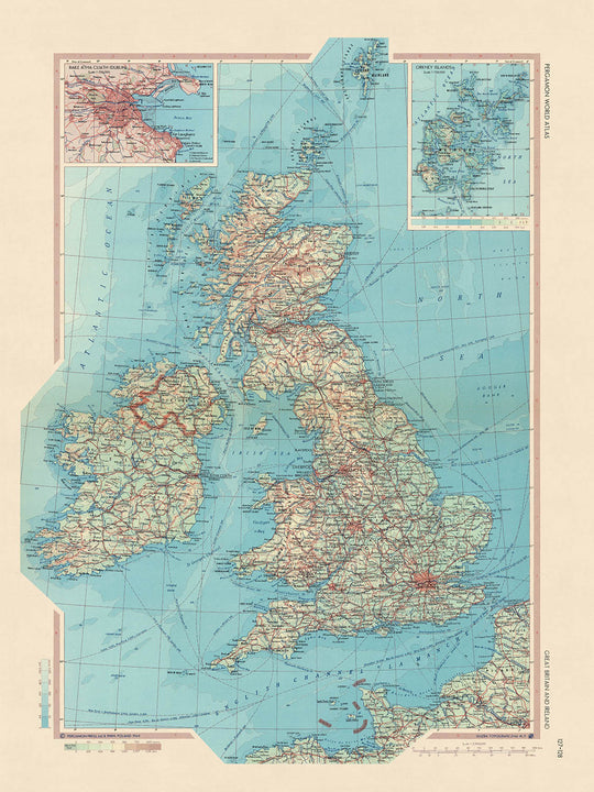 Alte Karte von Großbritannien und Irland, 1967: London, Glasgow, Edinburgh, Nationalpark Snowdonia, Fluss Thames