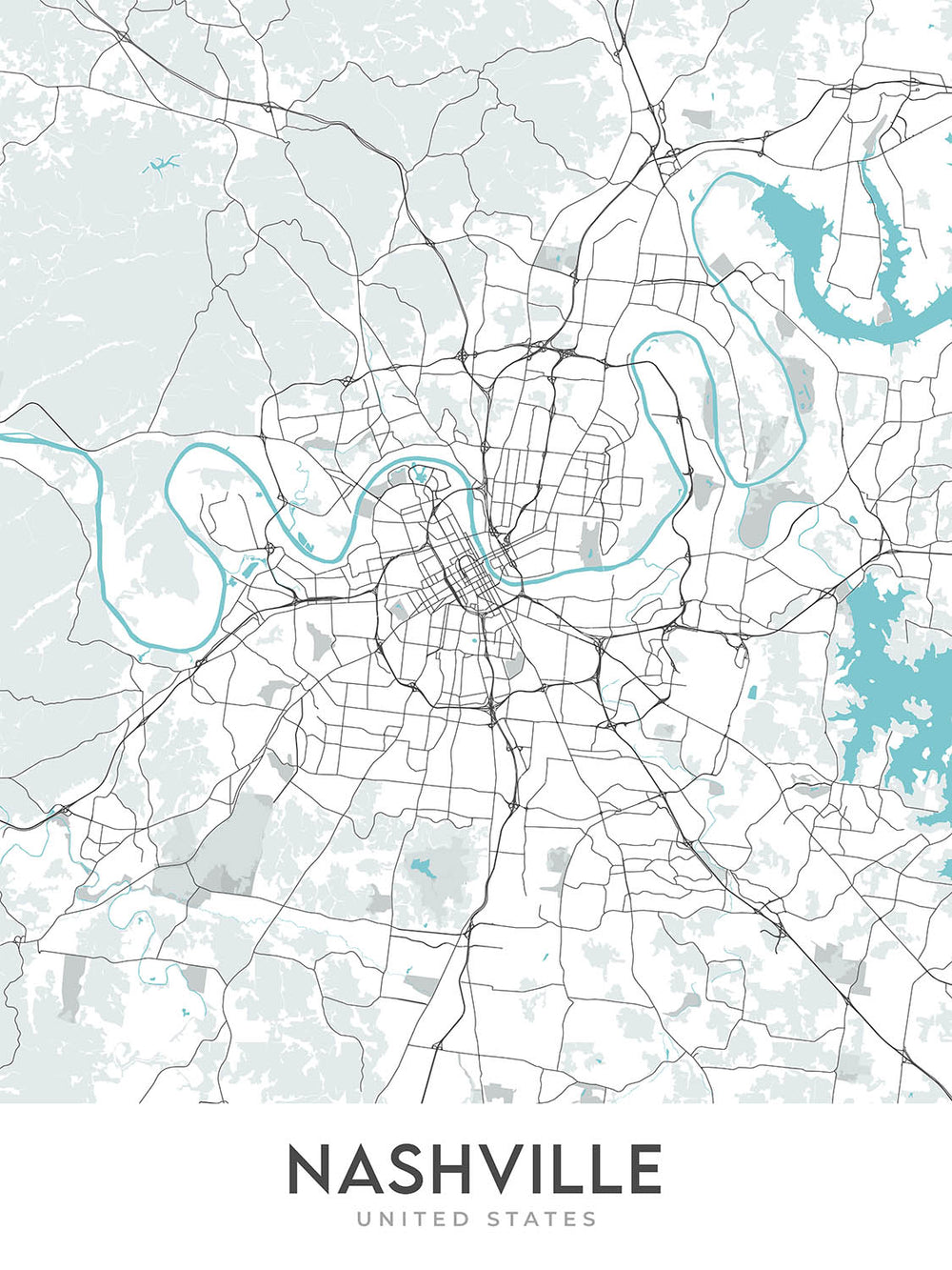 Moderne Stadtkarte von Nashville, TN: Innenstadt, Music City Center, Vanderbilt, Germantown, Shelby Park