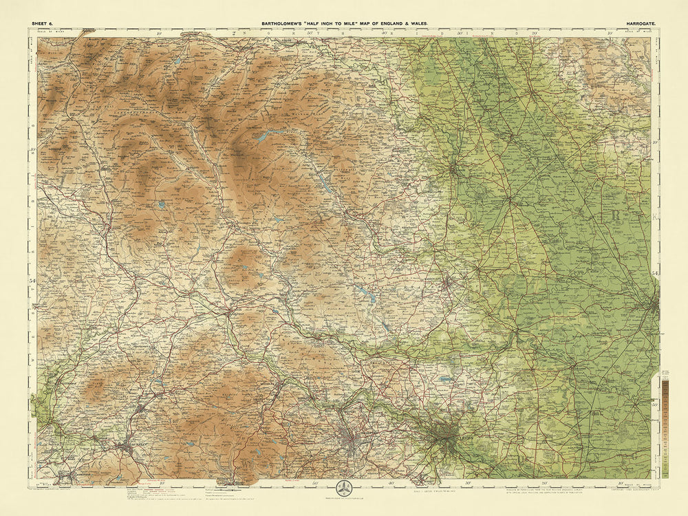 - Name der Karte: Blatt 6 - Harrogate, Teil der Halbinch-Bartholomew-Karte der Britischen Inseln.