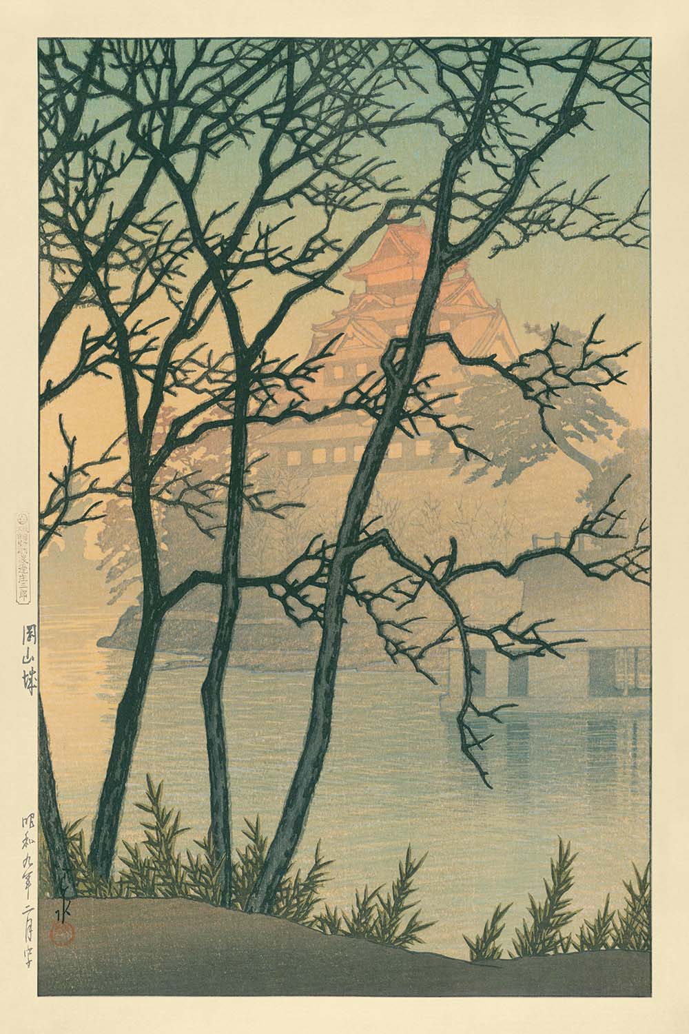 Morgendämmerung am Okayama-Schloss von Hasui Kawase, 1935