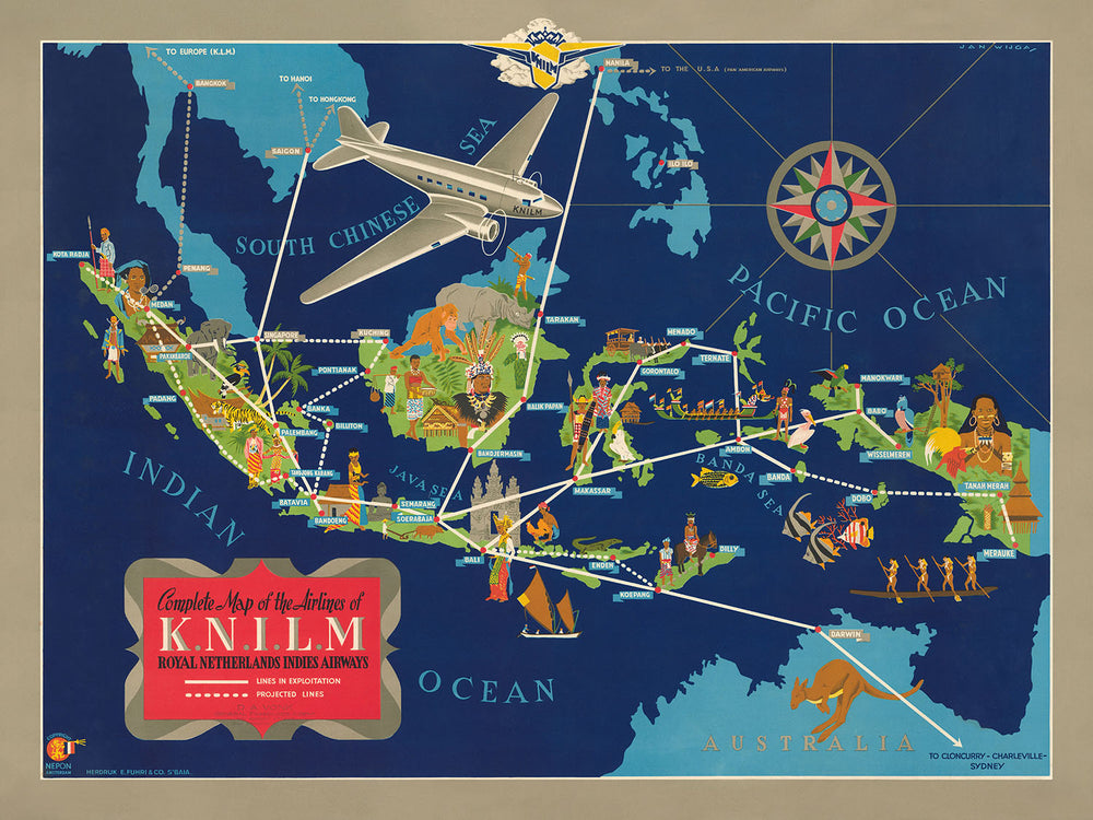- Name der Karte: Vollständige Karte der Fluggesellschaften von KNILM, Royal Netherlands Indies Airways