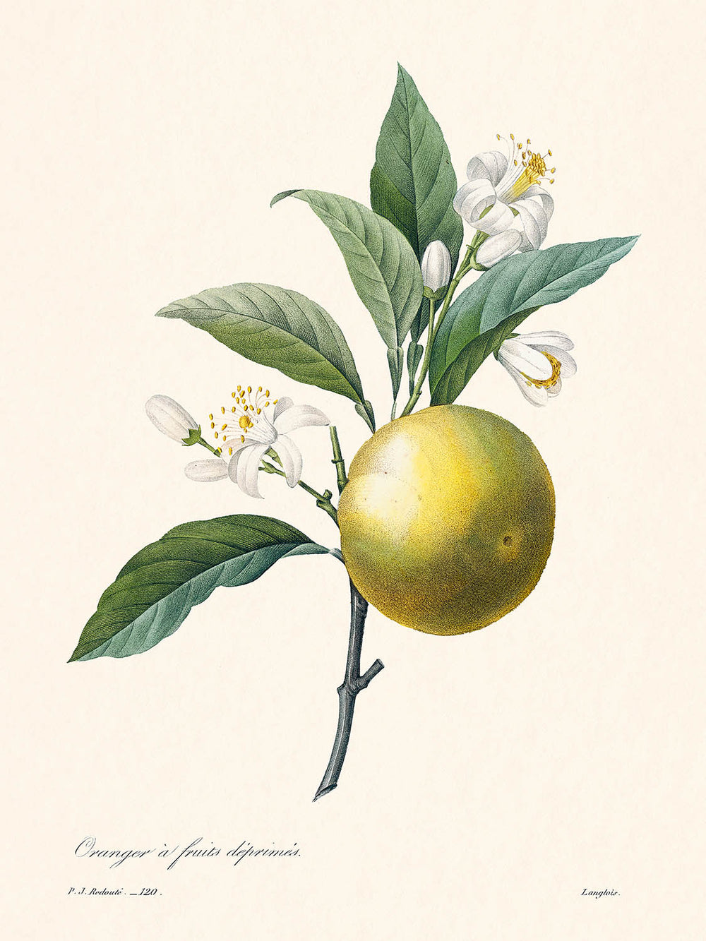 Orange Botanische Illustration von Pierre-Joseph Redouté, 1827