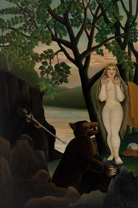 Der Reiz von „Unpleasant Surprise“ liegt in seiner geheimnisvollen Atmosphäre und dem lebhaften Einsatz von Farben, die eine Erzählung schaffen, die den Betrachter einlädt, ihre Komplexität zu erkunden. Dieses Kunstwerk ist besonders bemerkenswert für seine Balance zwischen Realität und Fantasie, ein Beweis für Rousseaus Geschick, die unerwarteten Wunder des Geistes einzufangen.