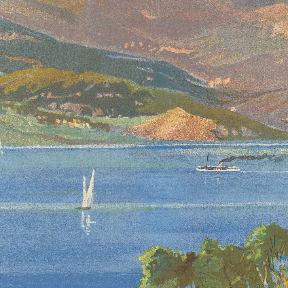 This listing is for a museum-quality fine art print of the original travel poster, produced on acid-free archival paper or artist’s cotton canvas for sumptuous color and long-term stability. Choose from a range of sizes, with custom framing options crafted to complement historic works on paper. Personalization is available from The Unique Maps Co., including custom captions, dates, and even coordinates—perfect for commemorating a honeymoon, holiday, or once-in-a-lifetime adventure on the lake.