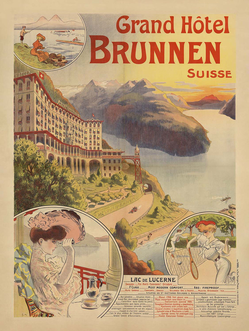 Lake Lucerne Travel Poster: Grand Hôtel Brunnen by Georges Meunier, 1905