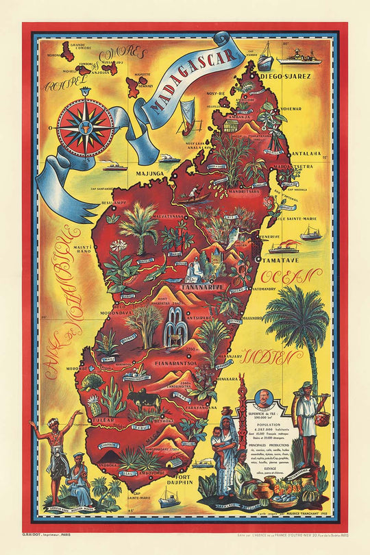Madagascar Travel Poster: Superficie de l’ïle by Maurice Tranchant de Lunel, 1952