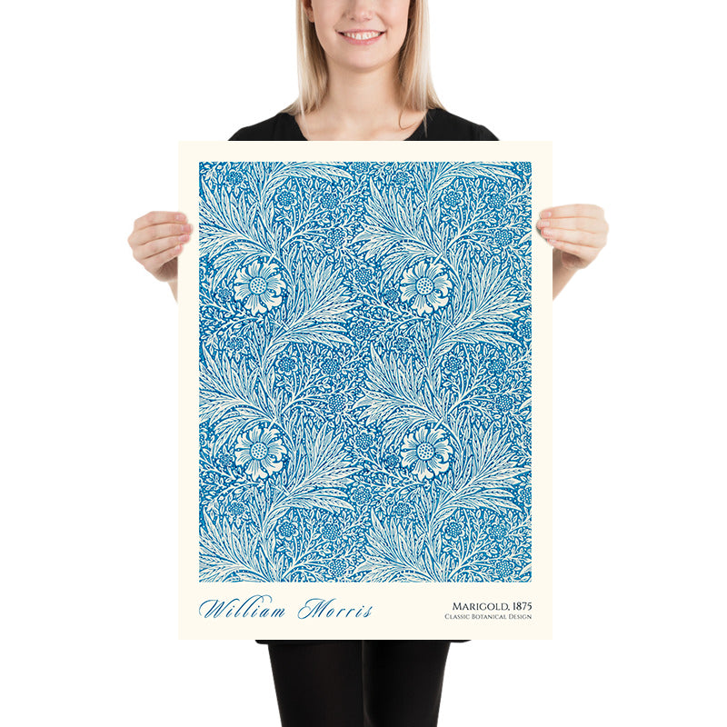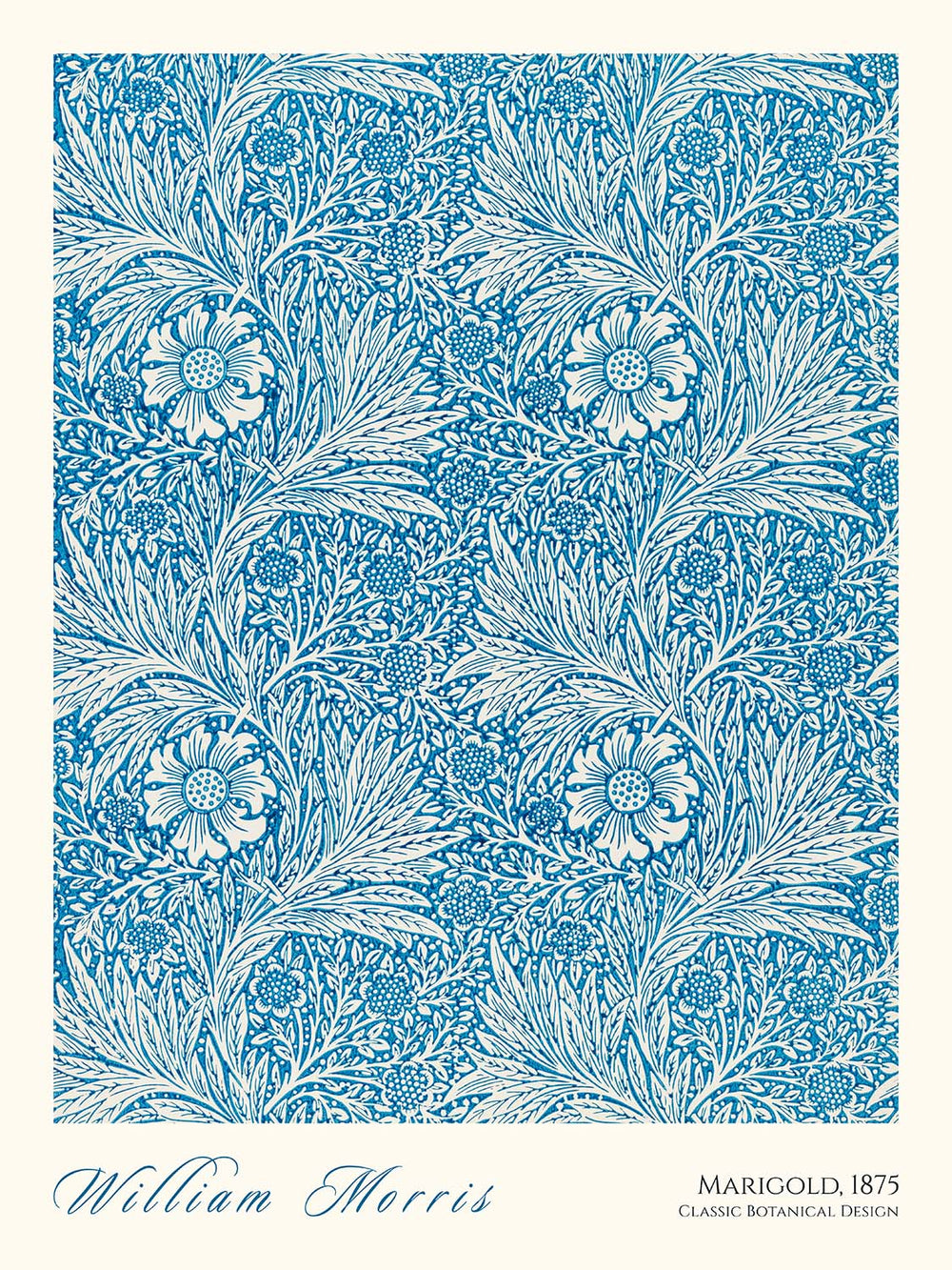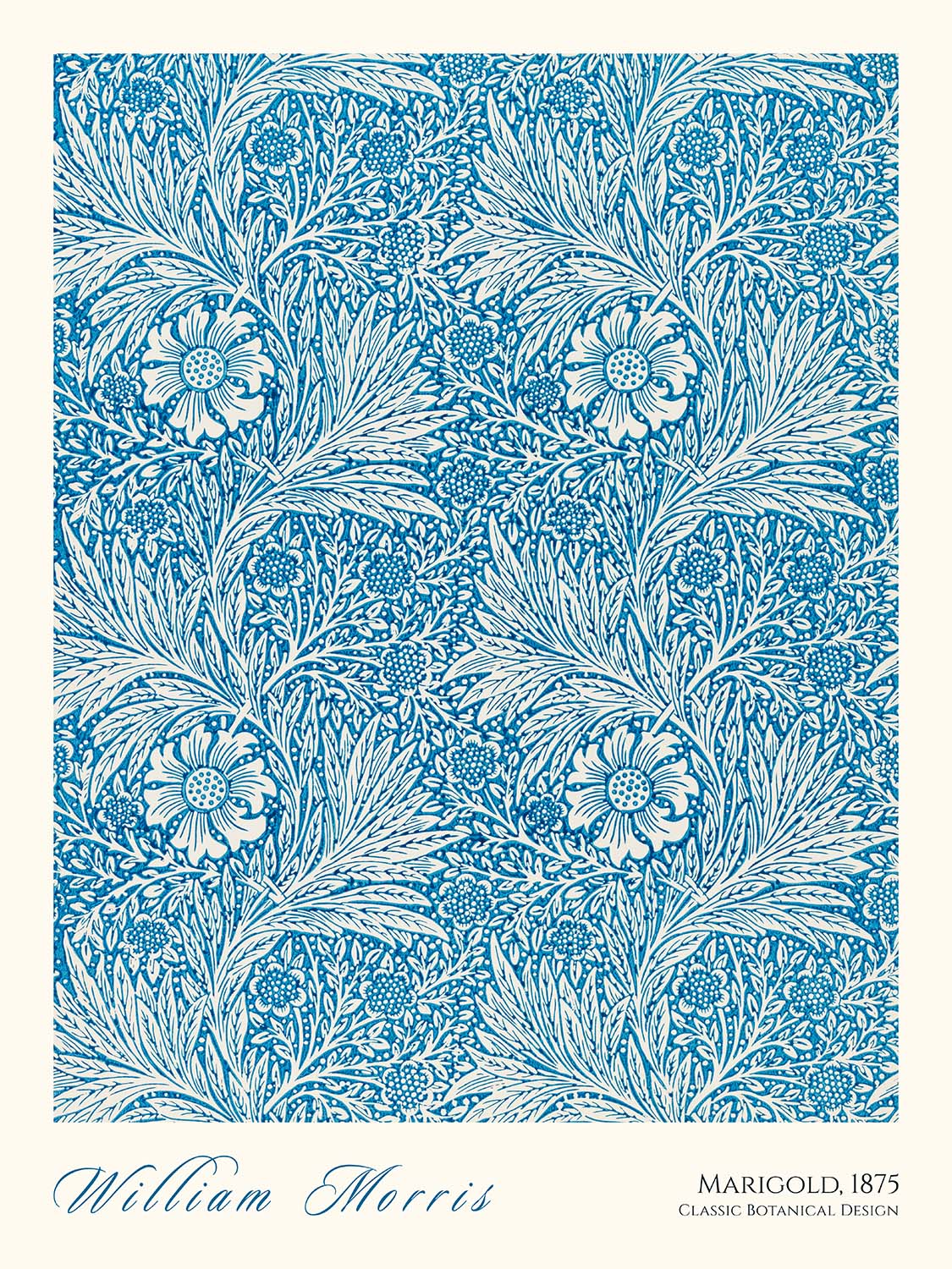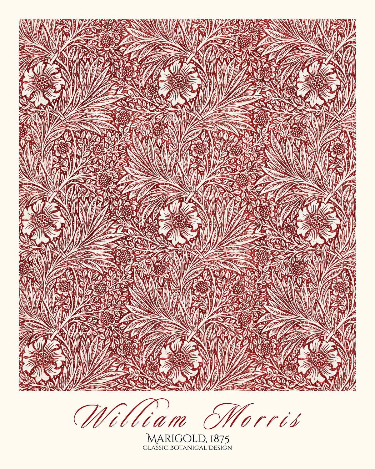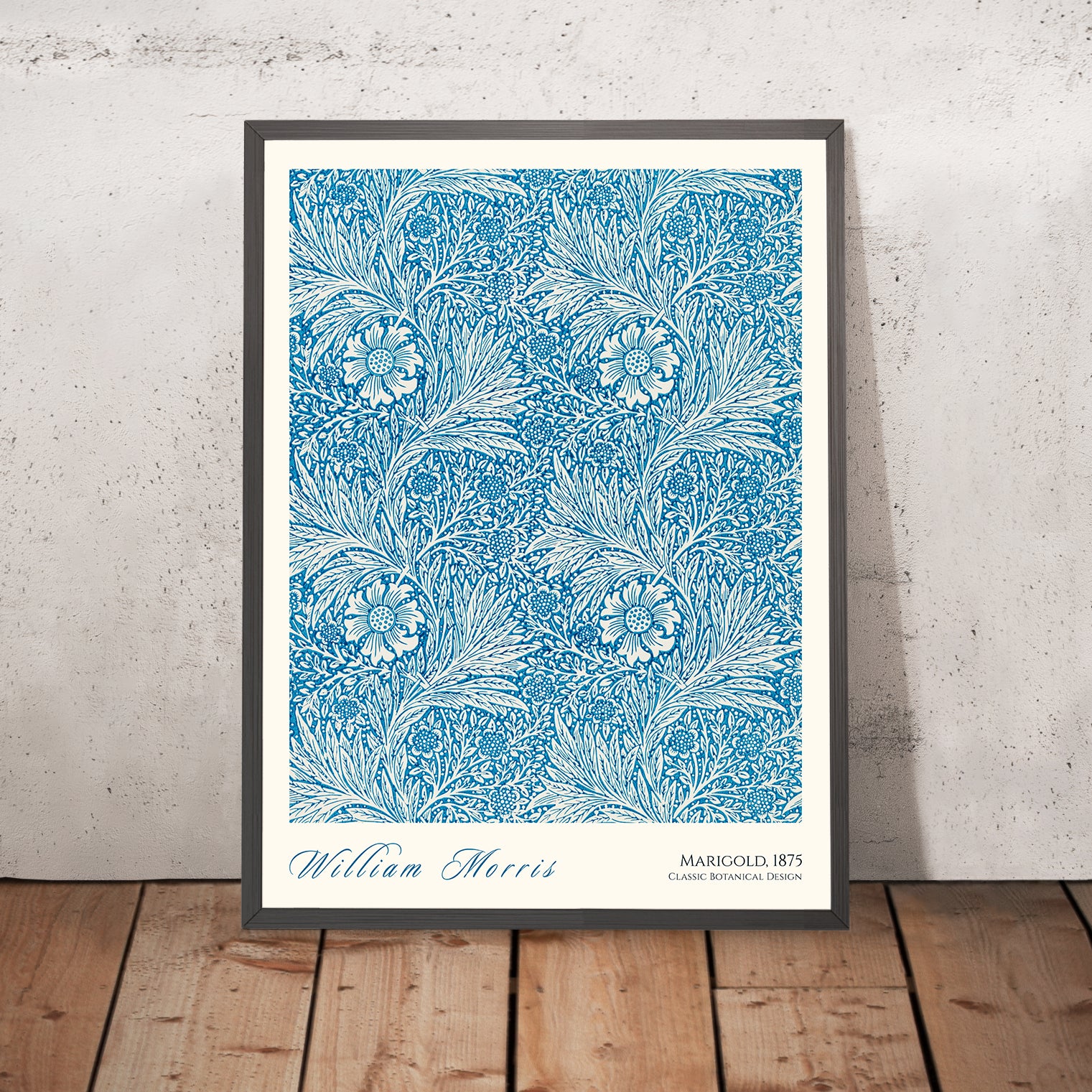 If you enjoy typographic and curatorial details in your wall displays, we can add the artist’s name and the pattern title—“William Morris, Marigold”—above or below the artwork. This optional captioning creates a refined, archival look and helps unify a mixed gallery wall of similar period designs.