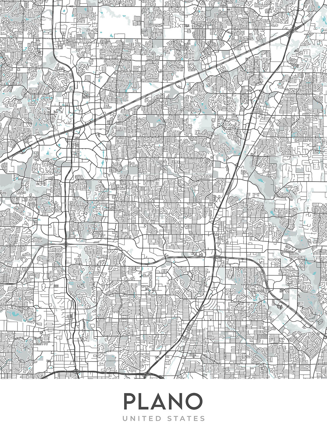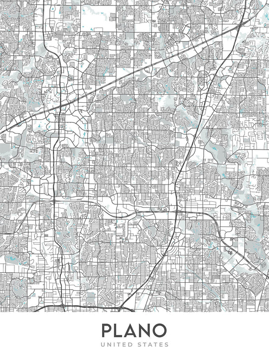 Diese Plano-Karte ist eine moderne, detaillierte Straßenkarte, die sich auf die Stadt Plano und die größere Region Texas konzentriert. Es ist ein wunderschönes Kunstwerk, das jedem Zuhause oder Büro einen Hauch von Eleganz verleiht. Die Karte deckt ein rechteckiges Gebiet ab, das ungefähr 16 Meilen hoch und 13,4 Meilen breit ist, wobei sich die Mitte der Karte bei den genauen Koordinaten 33,04944N, -96,75018W befindet. Die Karte umfasst viele bemerkenswerte Viertel, darunter Downtown Plano, Historic Downtown Plano, Legacy West, Park District, Preston Hollow, Ridgeview, Spring Creek, The Colony, Willow Bend und Windhaven.