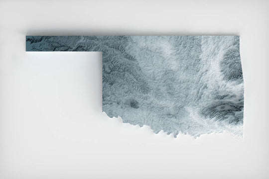 Erleben Sie Oklahoma, Vereinigte Staaten von Amerika – ein Land, das durch das Zusammentreffen von Prärien, sanften Hügeln und alten Bergen geprägt ist. Diese fesselnde Karte erweckt Oklahomas vielfältiges Terrain zum Leben, indem sie Licht und Schatten nutzt, um die dramatischen Landschaften zu betonen, von den höchsten Höhenzügen bis zu den breiten Flusstälern.