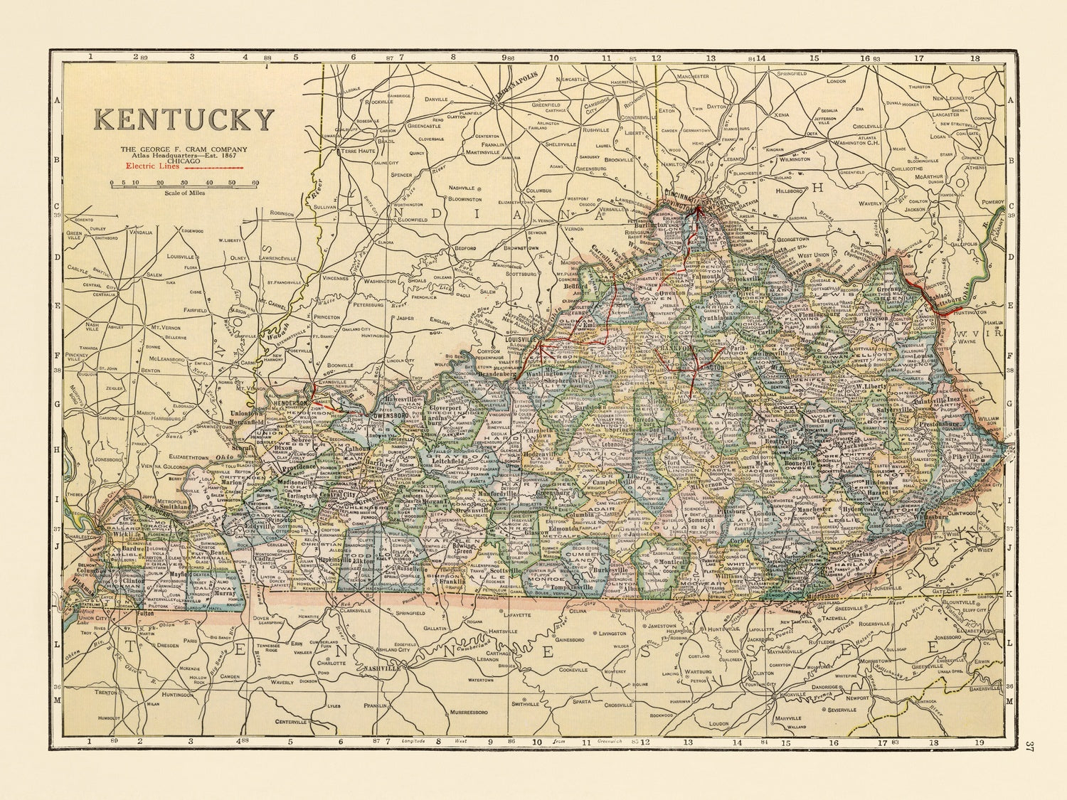 - Kentucky (1920), published by the George F. Cram Company, Chicago.