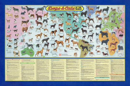 Alte Hunde- und Katzen-Weltkarte von Purina, 1973: Globale Rassen, Haustierkultur der 1970er Jahre