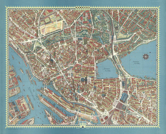 Dieser alte Stadtplan von Hamburg aus dem Jahr 1964 von Hermann Bollman bietet einen faszinierenden Einblick in die reiche Geschichte der Stadt. Die Karte hebt mehrere historische Sehenswürdigkeiten hervor, darunter die St. Michaelis-Kirche, die Alsterseen und die Elbe. Diese Wahrzeichen spielten in Hamburgs Vergangenheit eine bedeutende Rolle und sind auch heute noch wichtige Touristenattraktionen.
