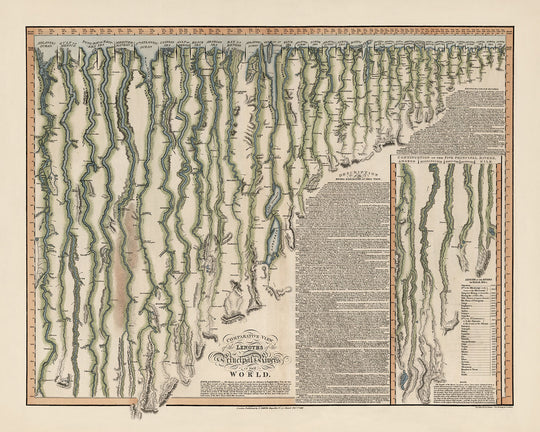 Alte Karte der längsten Flüsse der Welt von Smith, 1817: Vergleichende Längen, Missouri, Nil, Amazonas usw.