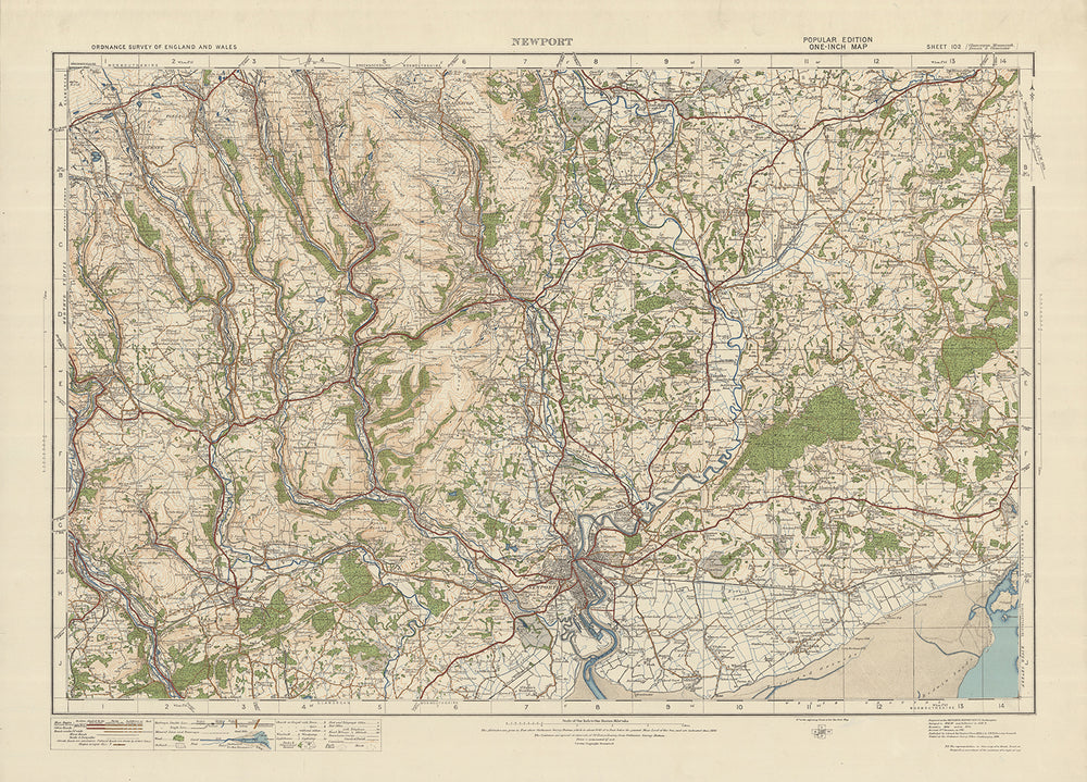 Tauchen Sie mit dieser sorgfältig detaillierten Old Ordnance Survey Map, Blatt 102 – Newport, 1925, in die Geschichte und Geographie der Region ein und entdecken Sie die Geschichten und das Erbe, die diese Städte und Landschaften geprägt haben.