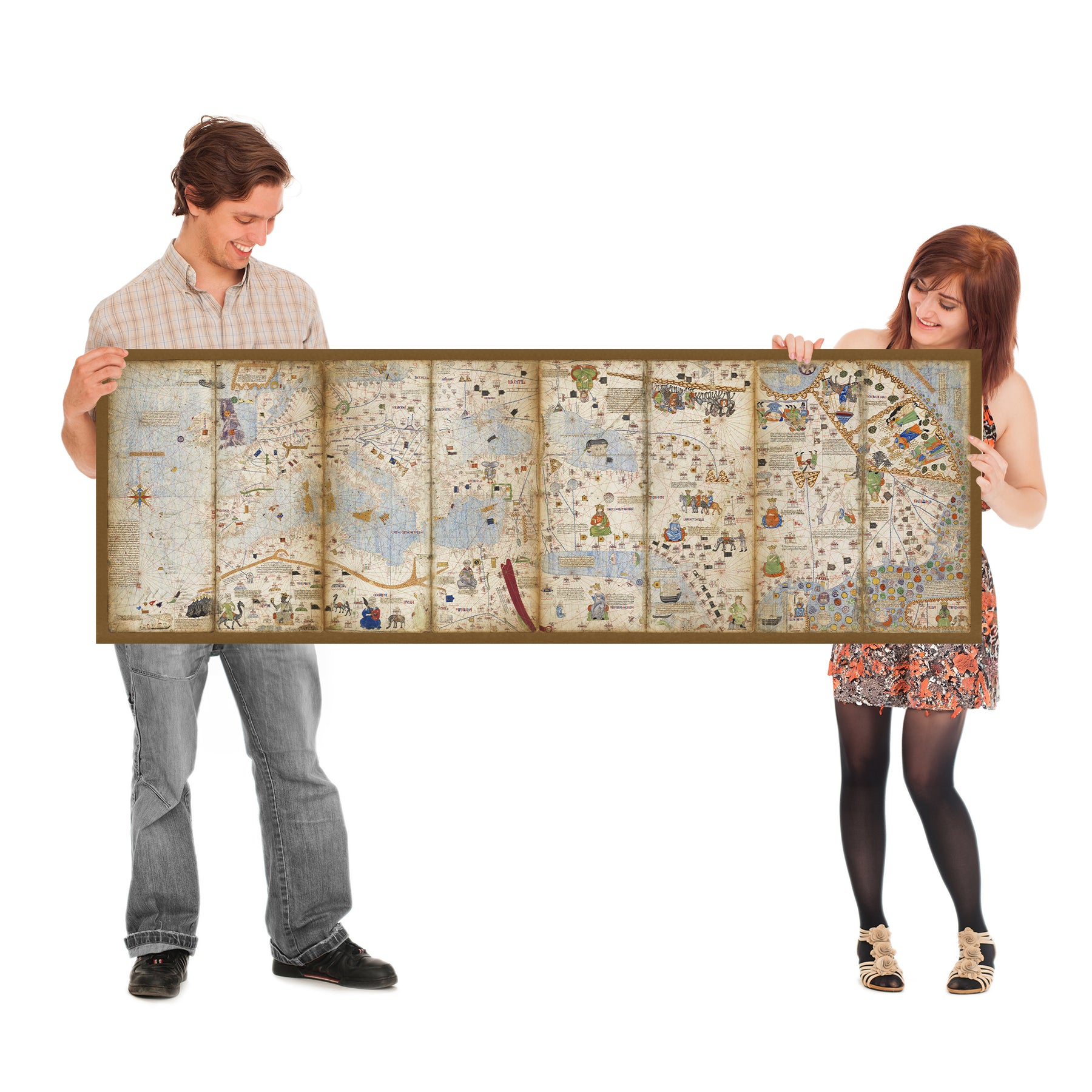 • Detailed depictions of trade routes and a variety of human figures representing different cultures