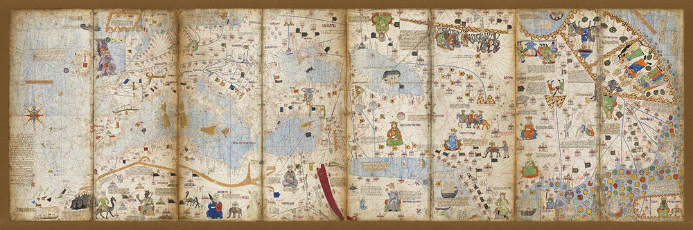 Old "Catalan Atlas" Portolan Map by Cresques, 1375: Medieval Jerusalem, Mali gold, Golden Horde, Silk Road