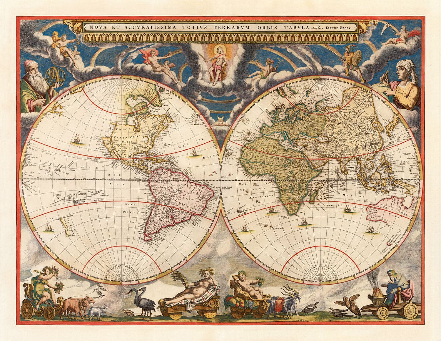 Alter Weltatlas Karte, 1662 von Joan Blaeu: Seltene handkolorierte Vintage Wandkunst