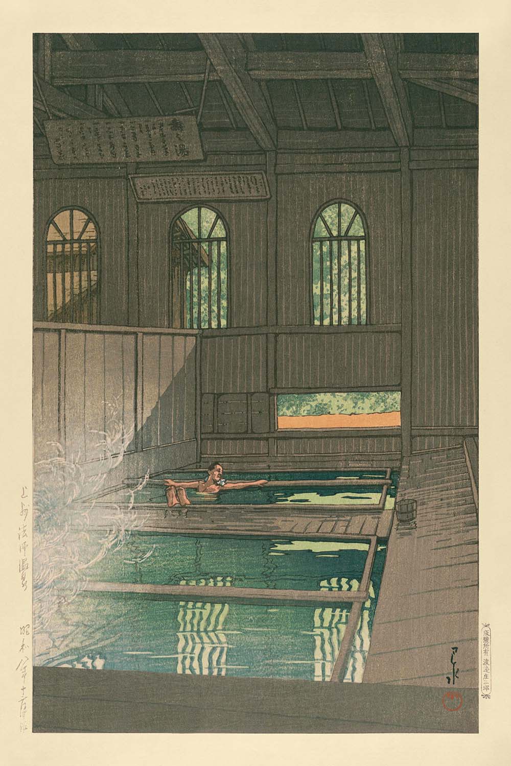 Onsen-Bad und entspannender Mann von Hasui Kawase, 1935