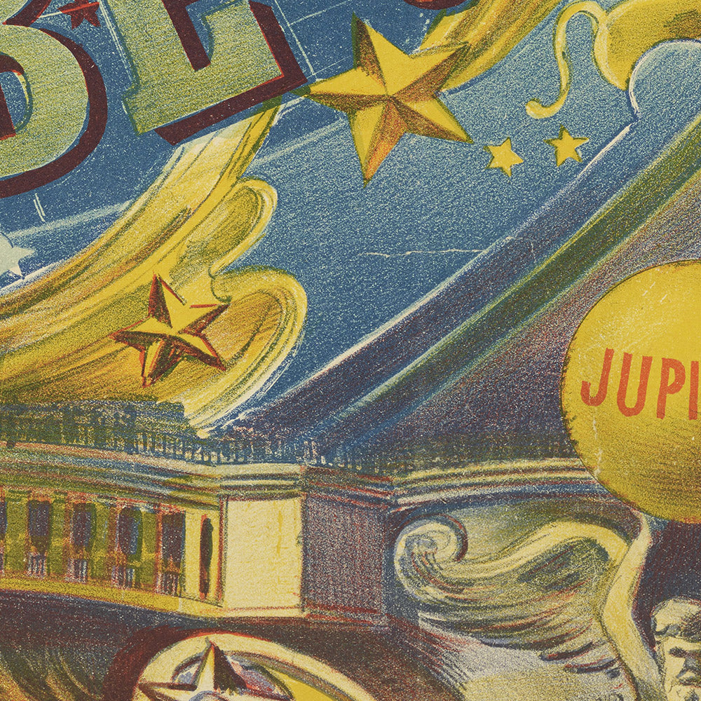 Grand globe céleste. Exposition Universelle de 1900 by Paul Dupont captures the excitement and optimism of Paris at the turn of the twentieth century. Created for the 1900 Exposition Universelle, this antique travel poster invites viewers into an age of innovation and spectacle, with a monumental globe and sparkling constellations symbolizing a world newly connected by science, travel, and culture. Art Nouveau curves, ornamental flourishes, and confident typography give the composition a graceful dynamism that still feels modern more than a century later.