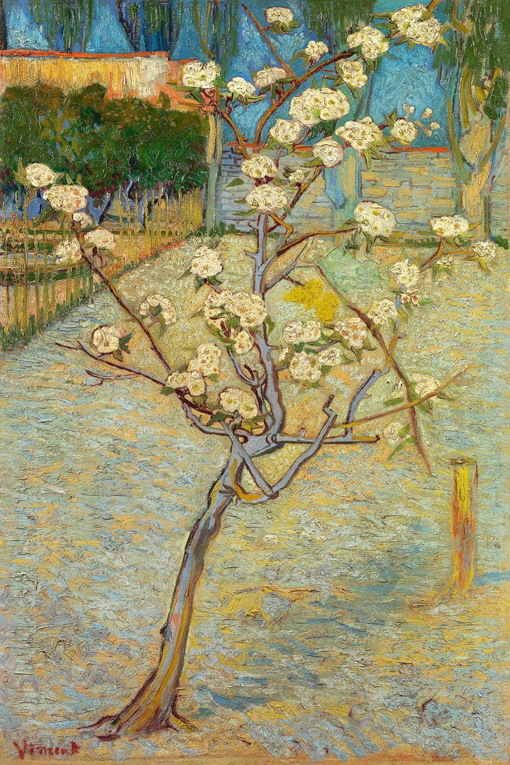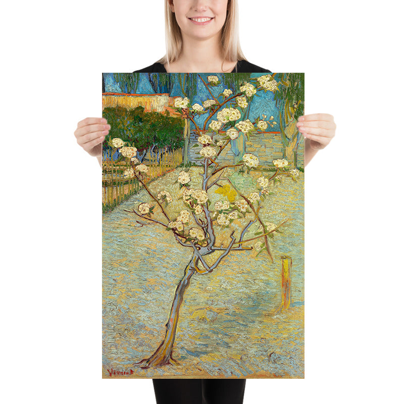 Historically, Small Pear Tree is part of a pivot in European art: away from purely optical realism and toward emotive color and form. The high horizon and flattened planes reveal Van Gogh’s deep engagement with Japanese aesthetics, while the modest scale of the tree underscores its quiet resilience. The subject—a pear tree in bloom (pear, genus Pyrus)—evokes the cycle of seasons and the fragile promise of spring, themes that resonated throughout Van Gogh’s Provence period.