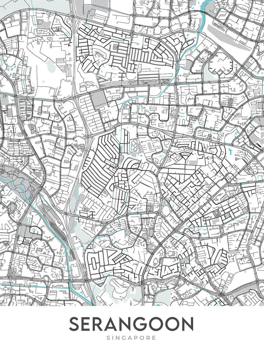 Sumérgete en las intrincadas y cautivadoras calles modernas de Serangoon, un vibrante vecindario ubicado en el corazón de Singapur, a través del lente del mapa "Serangoon" de The Unique Maps Co. Esta pieza contemporánea da vida a las dinámicas y bulliciosas calles de Serangoon, capturando la esencia de la vida urbana con su diseño de calles detallado y sin etiquetas. El mapa ofrece una perspectiva única del vecindario, destacando sus carreteras, puntos de referencia y espacios verdes exuberantes sin el desorden de las etiquetas de mapas tradicionales, convirtiéndolo no solo en una pieza de navegación, sino en una declaración visual impactante. La estética elegida para este mapa acentúa la modernidad y el carácter único de Serangoon, convirtiéndolo en un fascinante tema de arte cartográfico que atrae tanto a residentes como a admiradores de la región.
