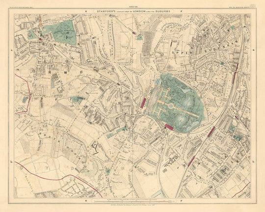 Originalmente aclamada como "el mapa más perfecto de Londres que se ha emitido" por la Royal Geographical Society cuando se publicó en 1862, es seguro decir que el mapa de Londres de Edward Stanford fue una obra maestra de la cartografía. Este aquí es un hermoso mapa coloreado a mano de la edición de 1891 del mapa de Stanford.
