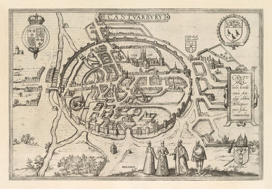 Publicado en 1588 por Georg Braun y Frans Hogenberg, este es probablemente el primer (y más raro) mapa impreso de Canterbury. Si Shakespeare visitó Canterbury, así es como habría lucido.